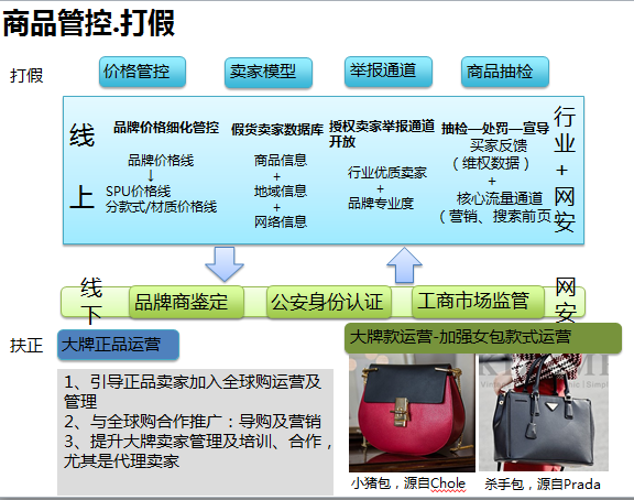 箱包类目也是不法商家风险较高的类目,淘宝网今年会在商品管控上做出更严密的布局。在箱包类目,我们会分为打假和扶正两个方面来开展。