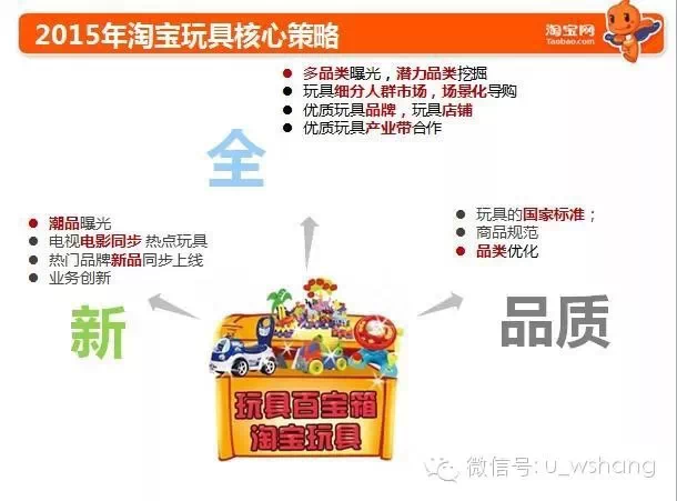 1、关于2015年淘宝玩具的核心运营策略,今年将主打“全”、“新”、“品质”三个点。