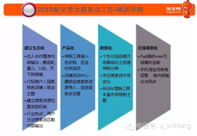 在这个基础上,淘宝鞋类的重点工作包括五个方面,